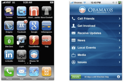 Nul doute que l’élection de Barack Obama a été grandement facilité par l’impact qu’il a eu sur les réseaux sociaux. Sa présence sur ces derniers a été et reste encore aujourd’hui complete. La machine de guerre Obama a été menée parfaitement entre actions locales et gestion centralisée sur tous les supports. L’accent a été mis sur la valorisation des militants et leur « pouvoir de changer les choses ». Le président a annoncé sa candidature à sa propre réélection pour 2012. Sa campagne sur les réseaux sociaux est en route mais, s’il a su surprendre ses rivaux il y a 3 ans, il devra s’attendre à plus d’engagement de leurs part sur ces médias pour 2012.