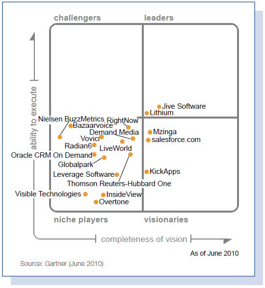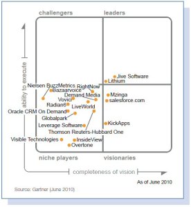 Aujourd’hui le marché est aux trousses du social media. Garnter prédit que 10% des problèmes des services après vente seront réglés par les communautés d’ici 2015.